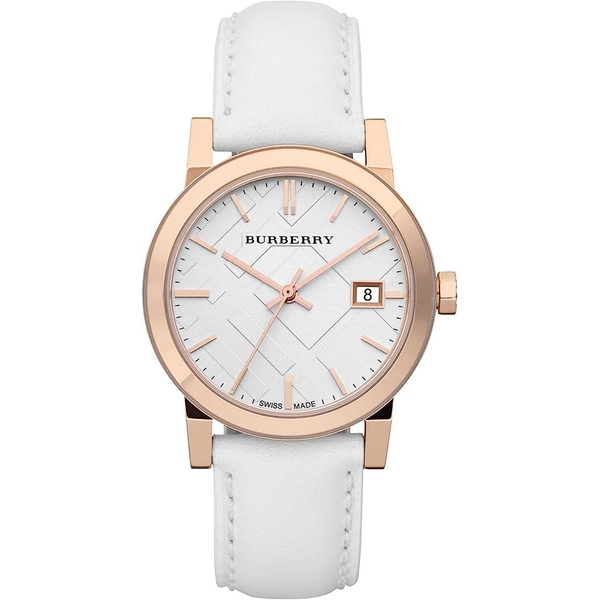 Burberry BU9108 Women’s Rose Gold & White Leather Watch – 34mm