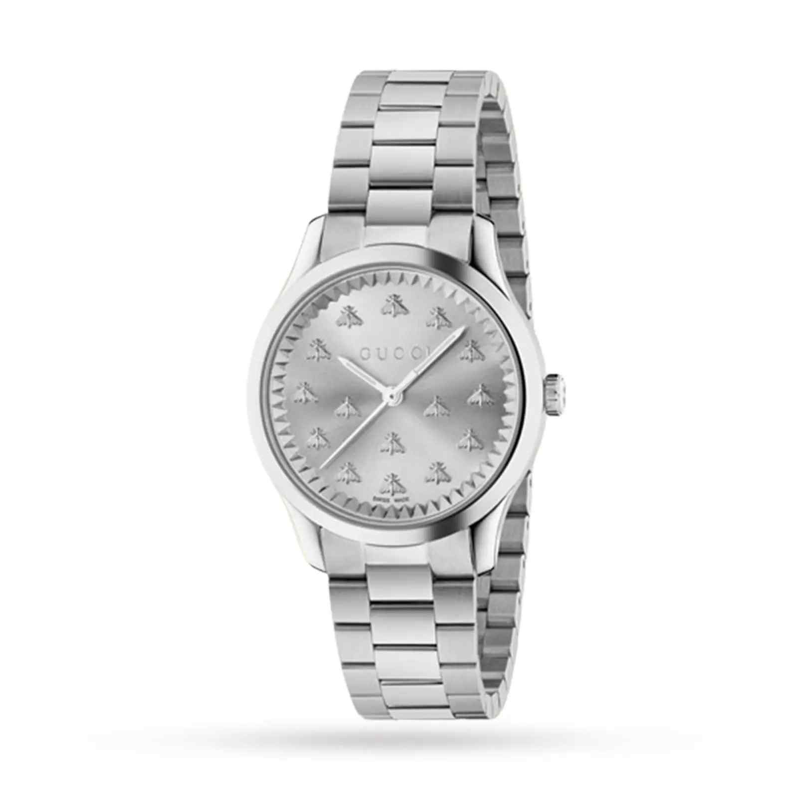 Gucci G-Timeless Ladies Silver Bee Watch – 29mm Stainless Steel & Bracelet YA1265031