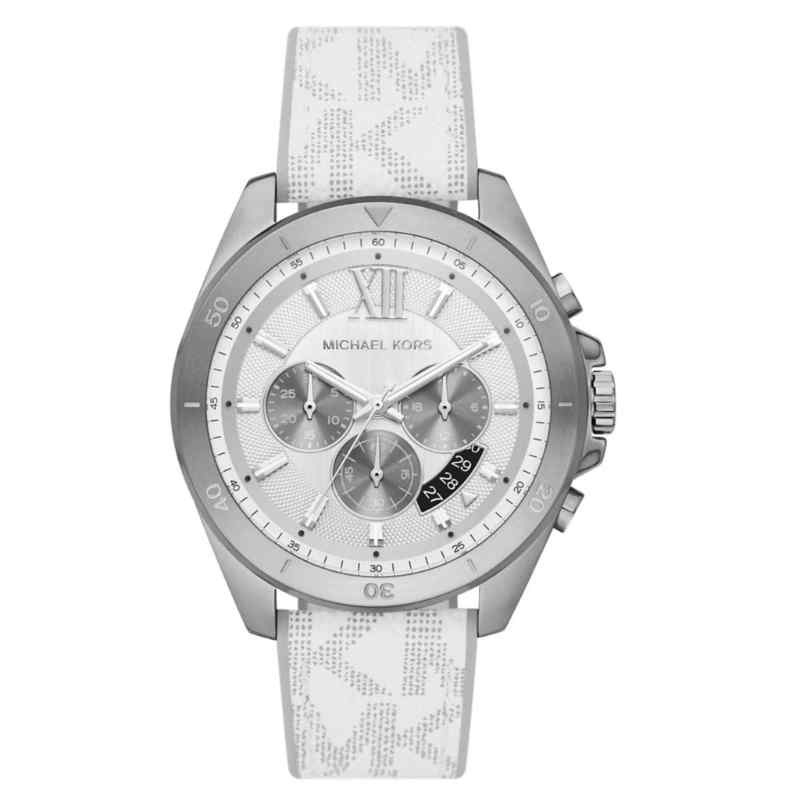 Michael Kors MK8949 Brecken Men’s White Grey PVC Silver Tone Chronograph Watch