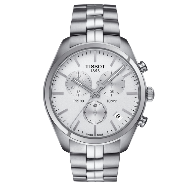 -62%The Tissot PR 100 Chronograph Men’s Silver Watch (T101.417.11.031.00) embodies precision and robustness, living up to its name as a flagship model in the Tissot collection. This timepiece seamlessly blends classic watchmaking with contemporary aesthetics. The crisp white dial features chronograph sub-dials providing precise timekeeping functionality, while the silver stainless steel case and bracelet offer a polished and refined look. Built with a reliable Swiss quartz movement, this watch is designed for everyday wear and special occasions. Upgrade your style with this timeless yet modern Tissot PR 100.