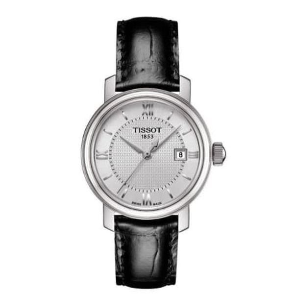 Tissot T-Classic Bridgeport Women’s Leather Watch (29mm) – Silver Dial/Black Strap
